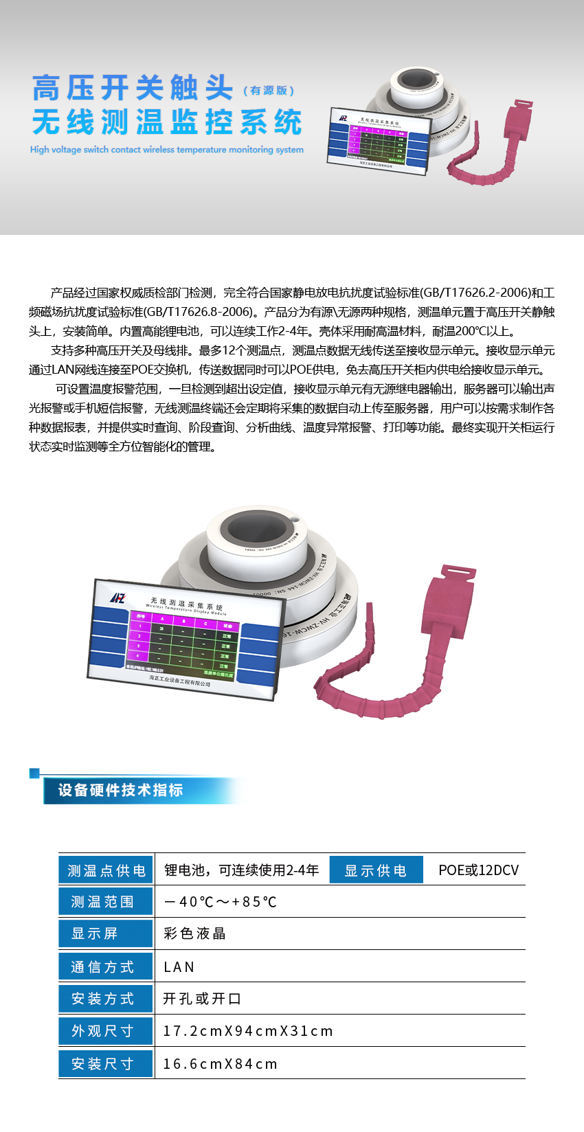 高壓開關(guān)觸頭無線測溫監(jiān)控系統(tǒng)(有源版)